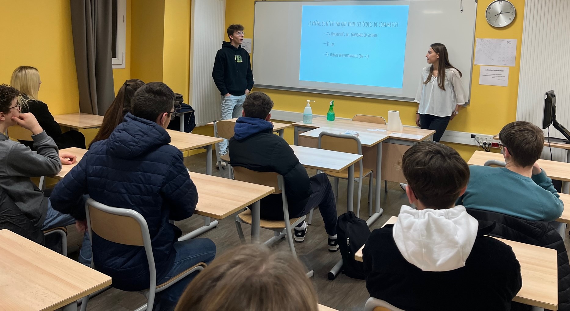 Le lundi 30 janvier, deux anciens élèves, Emma et Angus, sont venus à la rencontre des élèves de 1ère et Term STMG pour leur parler de leur expérience en Prépa Économique et commerciale technologique (Prépa ECT). Ils ont pu ainsi revenir sur leur parcours en série STMG au lycée thomas Hélye et témoigner de leur quotidien (cours et vie étudiante) au lycée Allende à Hérouville St Clair. Un beau moment de partage et d’échanges.