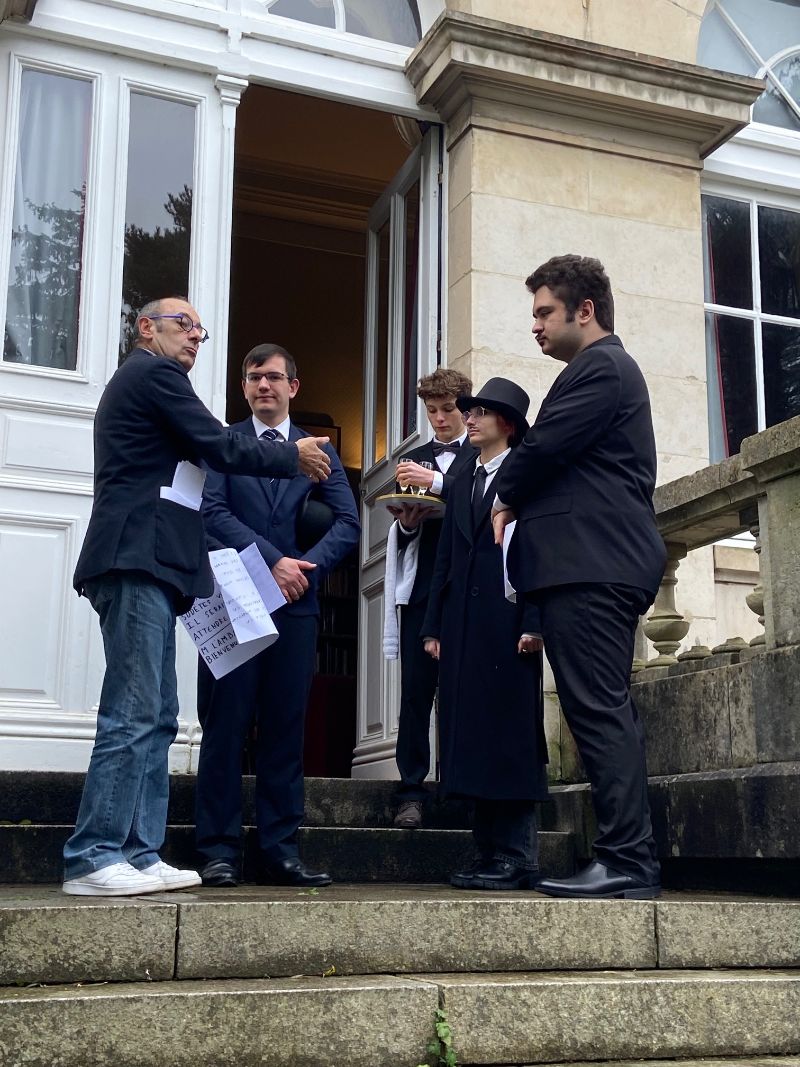 De nombreuses heures de travail ont été nécessaires pour faire aboutir le projet : recherches documentaires, écriture du script autour du thème imposé — « Conversation de quatre ambassadeurs lors d’une garden-party au 10 Downing Street, fin août 1938 » — puis élaboration de la mise en scène.